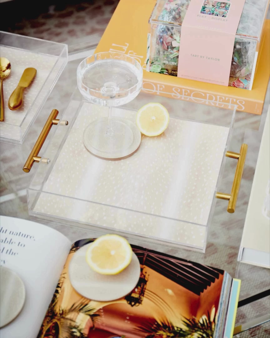 Bring some wild style to your decor with our Fawn Of You tray! Featuring a fawn tan animal print on acrylic, it's the perfect way to make a statement. Whether it's used to organize items or simply displayed as a fashion-forward piece, it's sure to be the star of your show. Now that's something to fawn over!