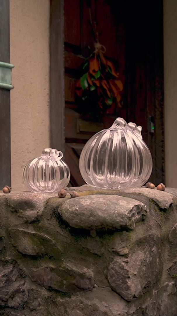 An emblem of the harvest here in New England, our simple Pumpkin gets an art-glass update with its dramatic twisted stem. Pick from our patch of differently sized pumpkins to celebrate the gourd-geous spirit of fall.